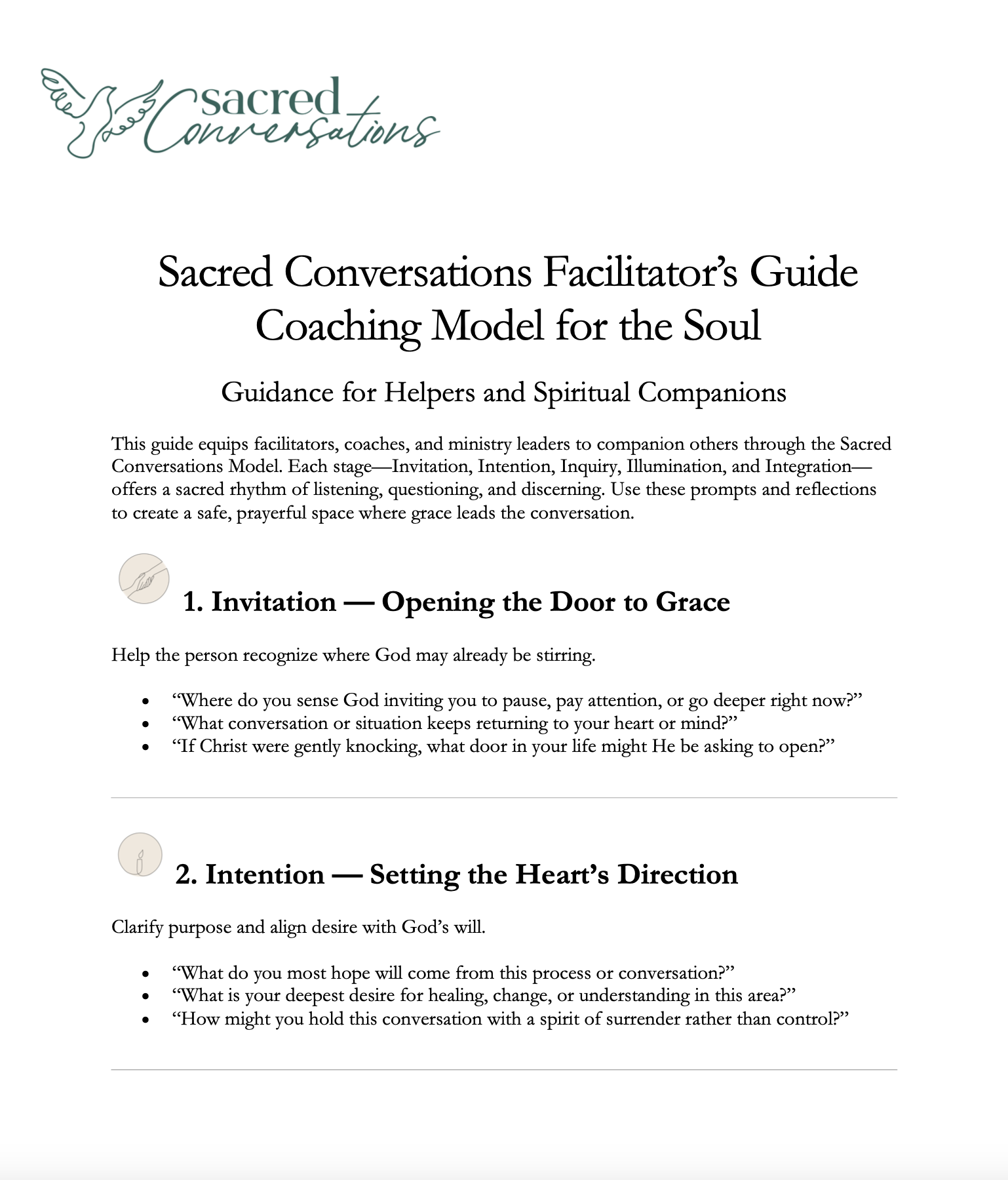 This guide equips facilitators, coaches, and ministry leaders to companion others through the Sacred Conversations Model.